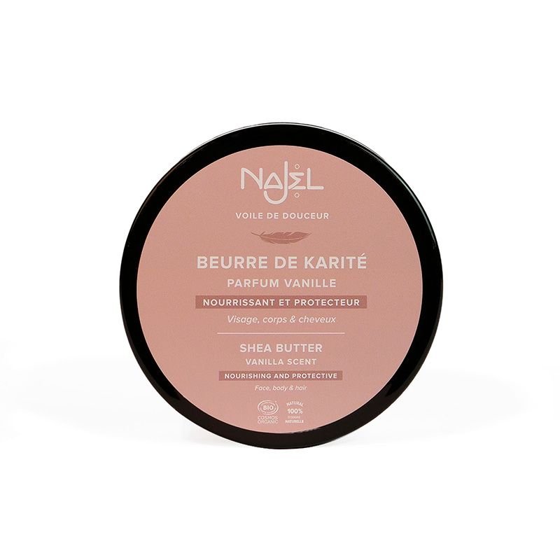 Le beurre de karité parfum vanille Najel est un soin multi-usages, adapté au corps, au visage et aux cheveux. Fabriqué en France, certifié Cosmos Organic et issu du commerce équitable, ce beurre brut est 100% naturel et non transformé. Naturellement riche en vitamines A, D, E et F, il apporte hydratation et souplesse aux peaux sèches. En hiver, il protège contre le froid et le vent, tandis qu’en été, il aide à apaiser et hydrater la peau exposée au soleil.