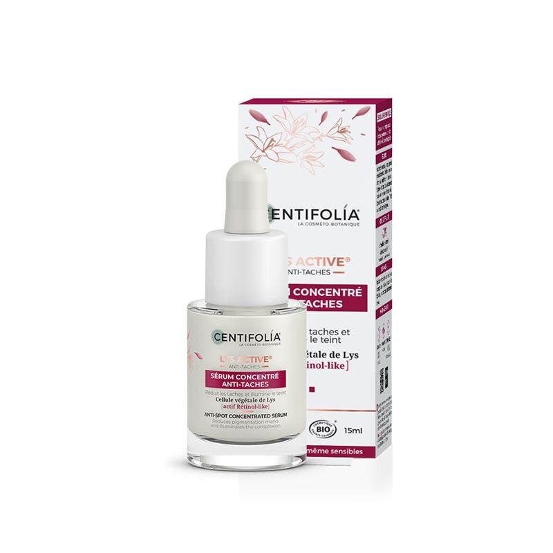 Le Sérum Concentré Anti-Taches Lys Active® combine les propriétés des cellules végétales actives de Lys Blanc, de l'actif Rétinol-like, ainsi que d'un actif spécifique anti-taches, l'extrait d'Algue rouge originaire de France. Ces actifs agissent sur la réduction des taches, améliorent l'uniformité de la peau et ravivent l'éclat du teint.